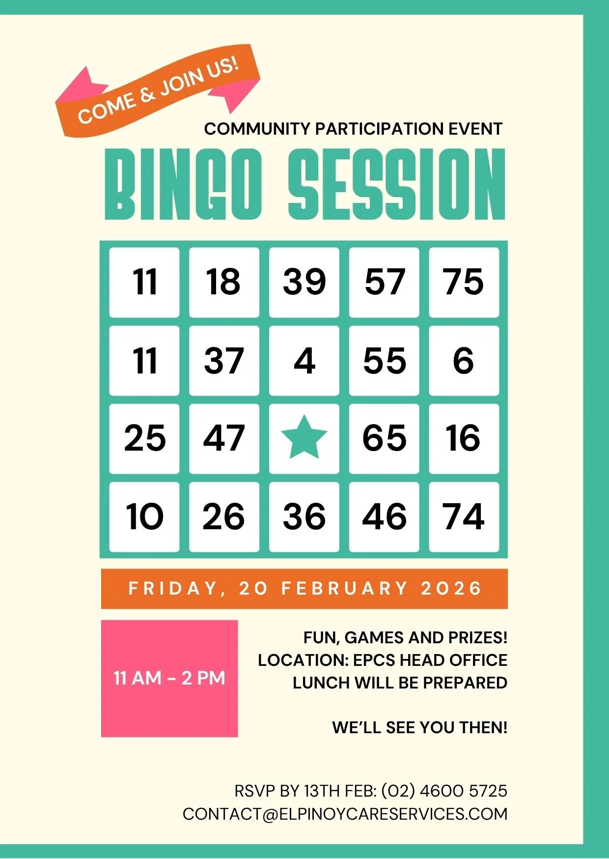 Bring your enthusiasm and get ready to call out “Bingo!”—we can’t wait to see you there!